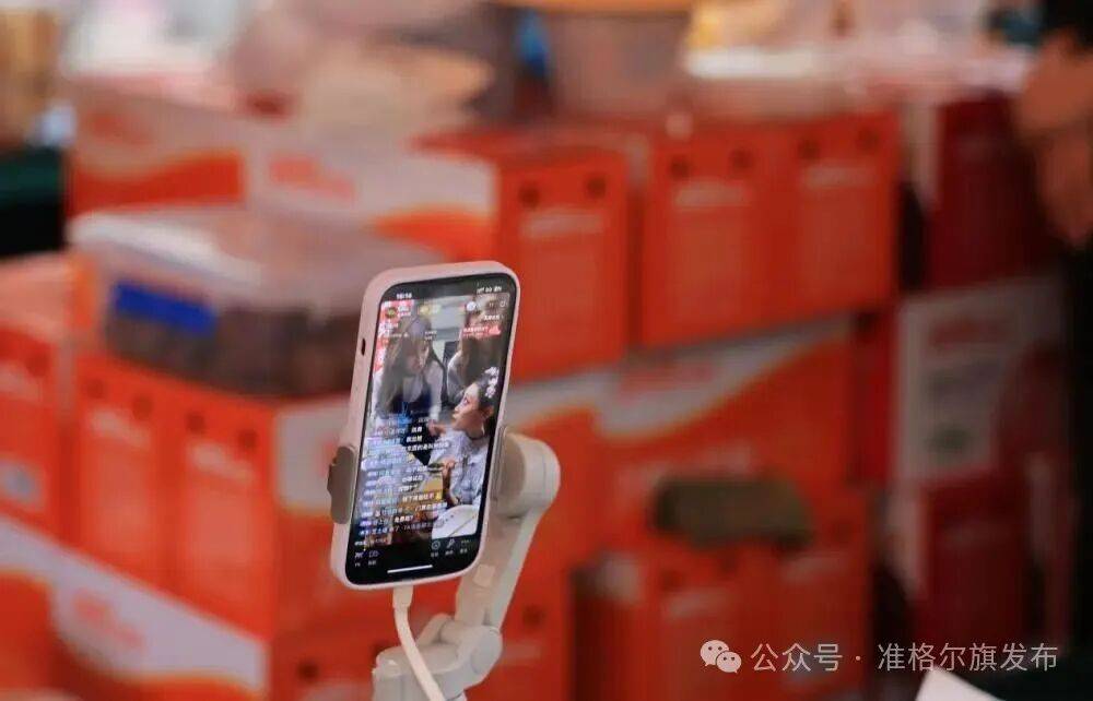 10月3日,网民在准格尔大河集大河臻选农特产品展销活动中推荐产品。(李峰 摄)