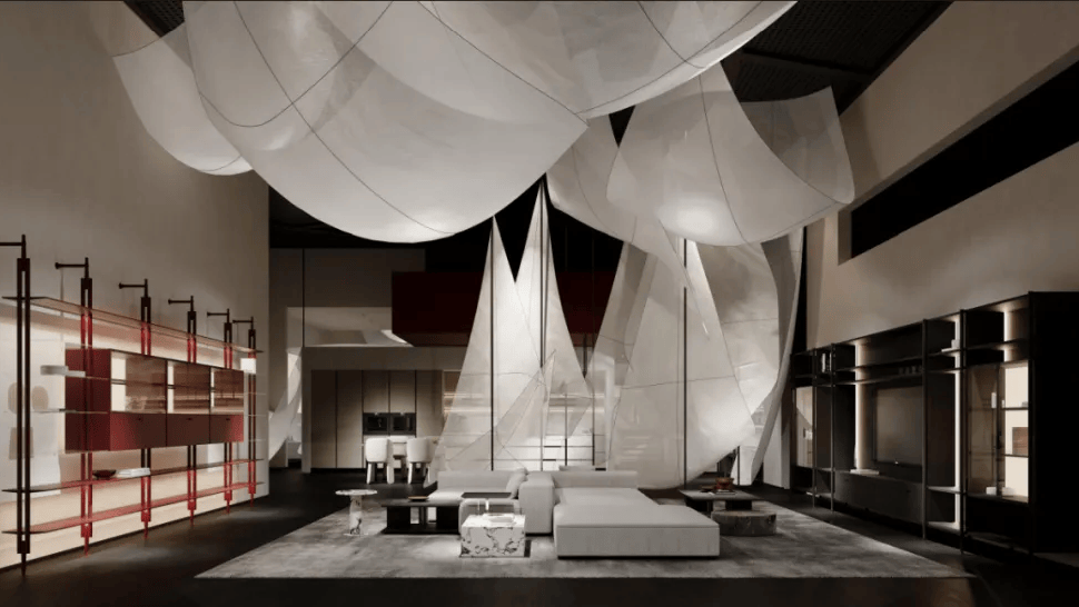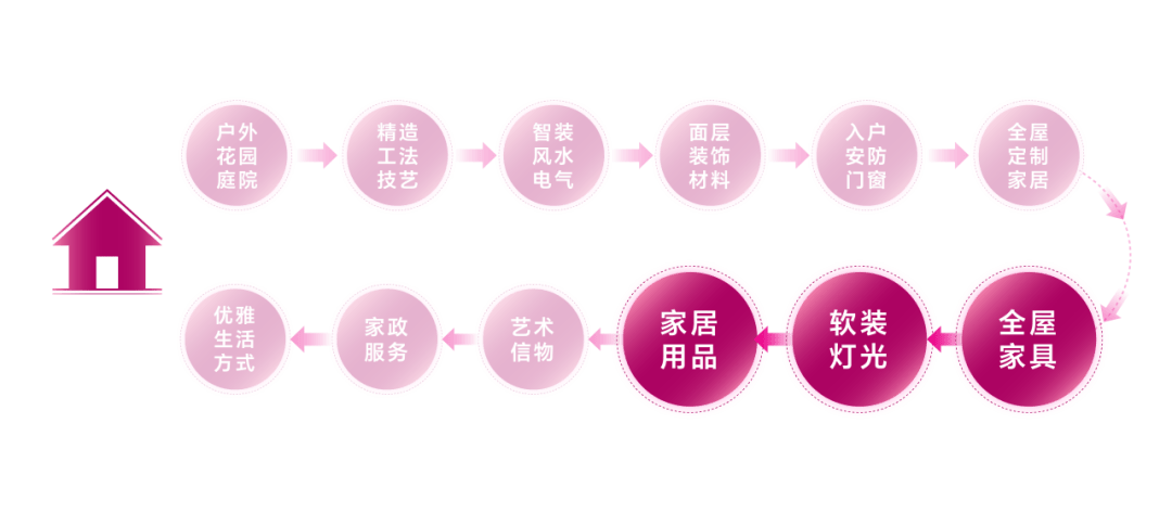 「国采馆」则以“软装+生活美学”为方向,涵盖全屋家具、软装灯光、家居用品三大品类,承接内装完成后的氛围营造与生活场景构建。