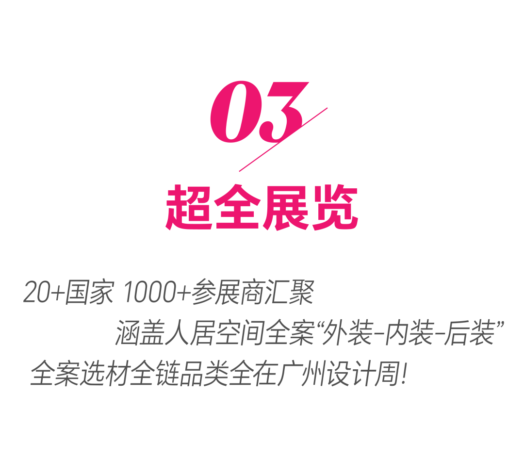 展览方向:当代人居生活美学新业态的设计+选材,全案选材全链品类全在广州设计周。
